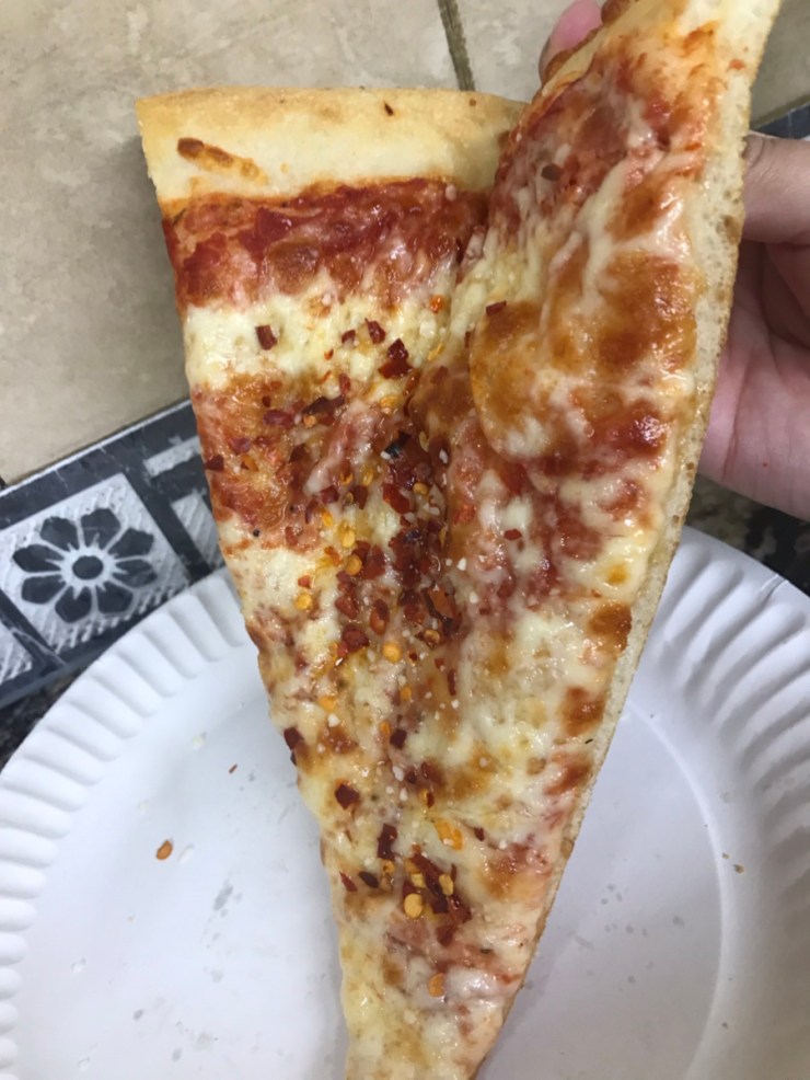 Dejamos nuestras maletas y caminamos unas pocas cuadras hasta la ubicación más cercana de .99 Cents Fresh Pizza (están en toda la ciudad de Nueva York) y pedimos el especial de $2.75, 2 tozos de pizza y una botella de agua o una lata de refresco. Cada trozo de pizza cuesta .99 centavos, y la pizza es deliciosa.