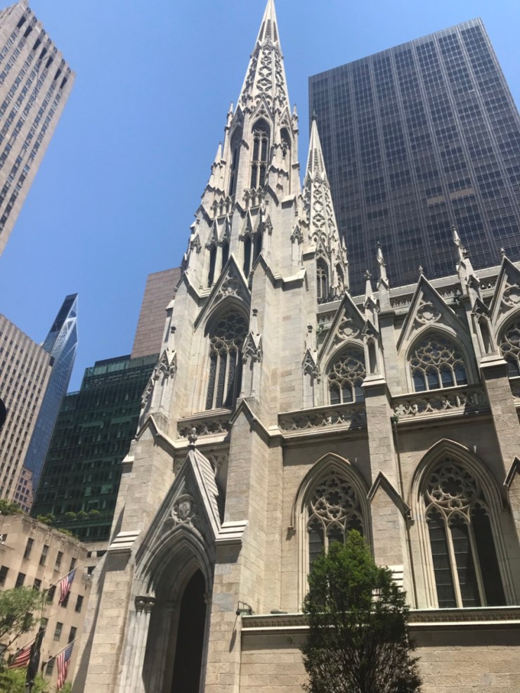 Nuestra siguiente parada fue al lado, en la catedral St. Patrick Cathedral, este edificio de estilo neogótico en el corazón del centro de Manhattan, no se debe perder. Cuenta con impresionantes trabajos en vitrales e imponentes puertas de hierro. Las enormes columnas son hermosas. Tengo que decir que me entristeció la falta de respeto que presencié en los visitantes. Cuando visite la catedral, por favor compórtese de manera apropiada, sea respetuoso con quienes asisten a misa o rezan.