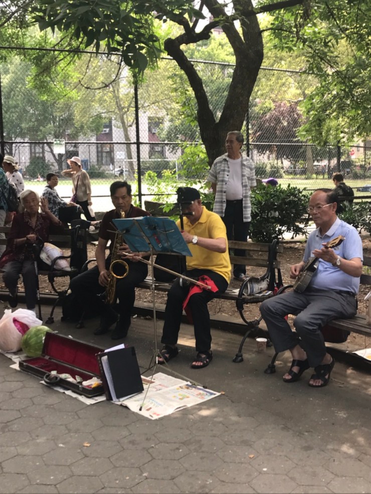 Caminando por Chinatown, nos encontramos con Columbus Park, nos sentamos en un banco y disfrutamos escuchando música tradicional china en vivo.