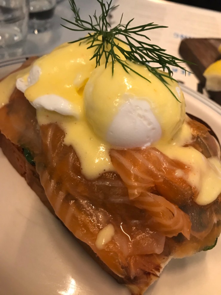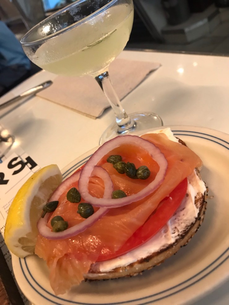 Comenzamos nuestro día visitando Russ & Daughters Café para el desayuno. Este fue el punto culminante de nuestro viaje. Nos encantó este lugar, y lo recomendamos encarecidamente cuando visite la ciudad de Nueva York. Sirvieron el salmón y el arenque más frescos que hemos disfrutado. Sus bagels son deliciosos. Ordenamos benedictos de huevo y latkes de papas. Sus cócteles eran deliciosos y refrescantes. Ninguna visita futura a Nueva York estará completa, a menos que visite a Russ & Daughters.