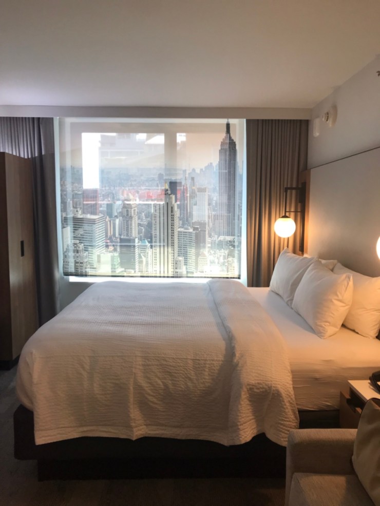 Después de nuestro desayuno, nos registramos en el hotel Fairfield Inn & Suites New York Manhattan/Times Square South. Nuestro tercer vecindario para explorar fue el área de Times Square. Después de ese gran desayuno en Russ & Daughters necesitábamos una siesta.