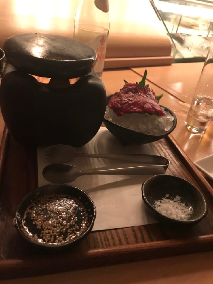 Después de nuestra siesta, nos dirigimos al restaurante del Iron Chef Morimoto’s NY City Restaurant, está situado en el área del mercado de Chelsea. El chef Morimoto es uno de los chefs favoritos de mi esposo, mi esposo realmente disfrutó la visita a este restaurante. La comida es fresca, minimalista, pero no simple. La decoración del restaurante era elegante, y los baños eran verdaderamente únicos y no deben perderse cuando visite el restaurante.
